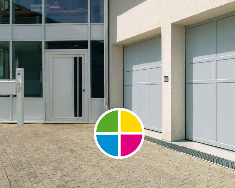 Die Stahl-Motive erhalten Sie serienmäßig in besonders günstigem Verkehrsweiß, in 7 preiswerten Vorzugsfarben sowie in rund 200 Farben nach RAL. Die Tore werden generell außen und innen farbgleich grundbeschichtet geliefert.