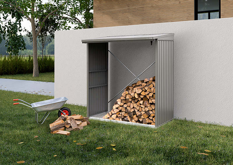 Perfekt aufeinander abgestimmt und leicht zu ergänzen: Unsere Gerätehäuser passen zu jedem Kaminholzregal und jeder Gartenbox.
